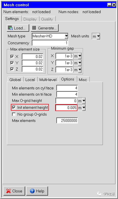 打开Mesh control设置对话框,如下图所示设置网格参数,点击按钮Generate…生成网格