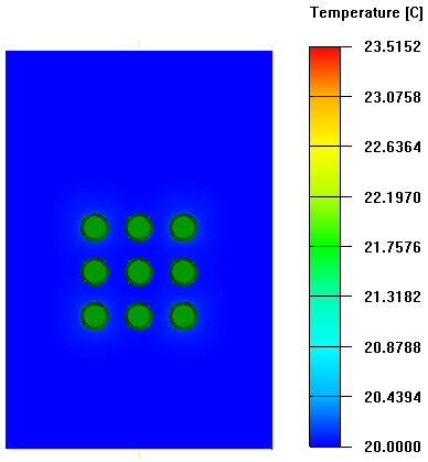 计算模型中包含一个散热器以及4个与时间相关的热源,考虑计算区域中的自然对流情况。