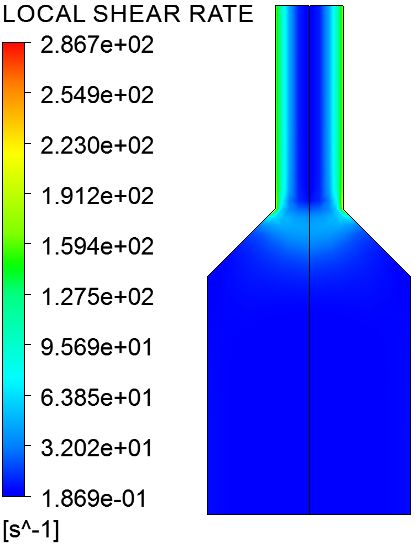 本案例演示利用Polyflow计算收敛管内非牛顿流体在高体积流量条件下流动。