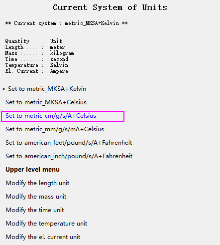 System of units for CFD-Post: metric_cm/ g/ s/ A+Celsius