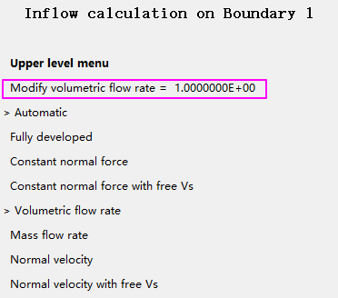 BS1: inflow: Volumetric flow rate Q = 1 (automatic, volumetric)