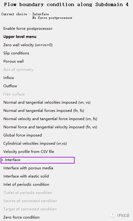 鼠标双击模型树节点Flow boundary conditions打开边界条件设置面板