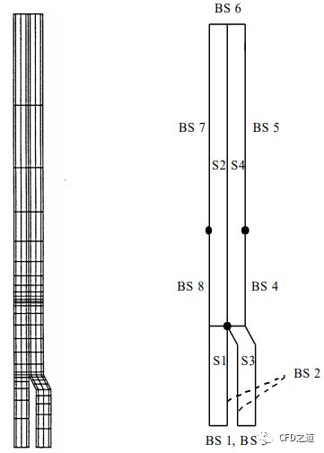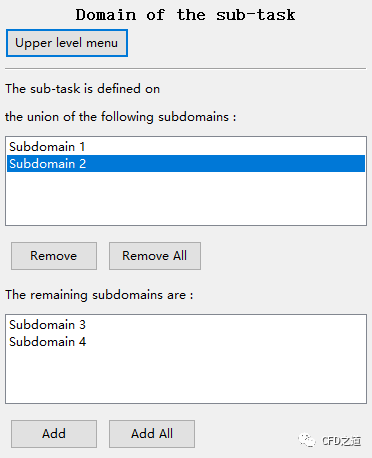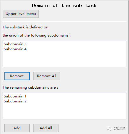 计算模型中包含两个自由表面区域以及两个静止区域,因此计算模型包含4个计算区域,如下图所示。