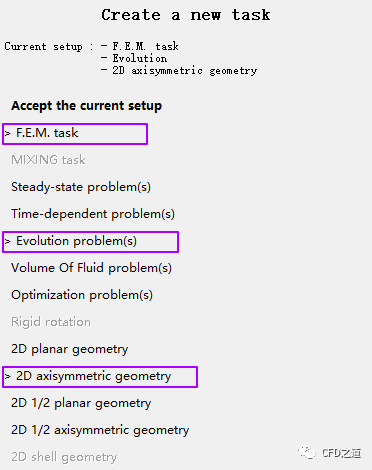 Create a new task:F.E.M. task,Evolution problem,2D axisymmetric