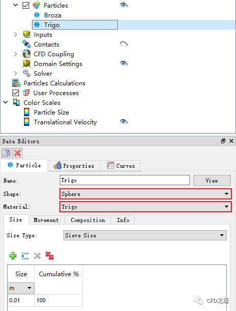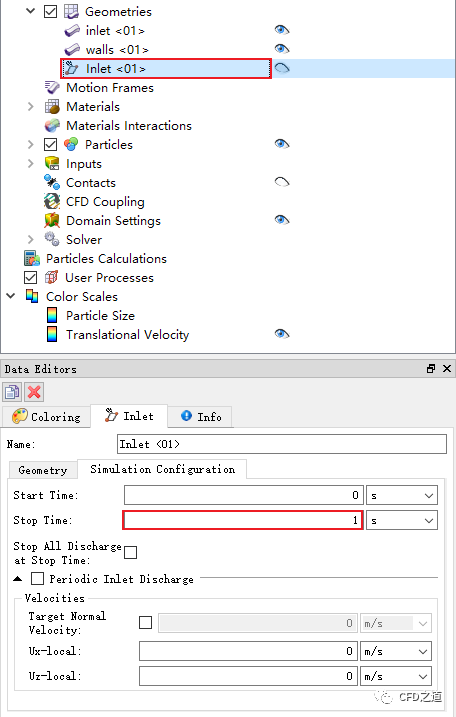 如下图所示设置颗粒入射参数