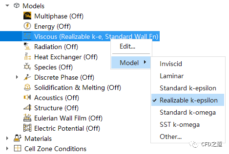 设置采用Realizable k-epsilon湍流模型