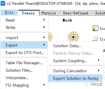 注:在Fluent中导出Rocky文件时会自动将边界转化为stl文件,不过这里建议直接读入cas文件。