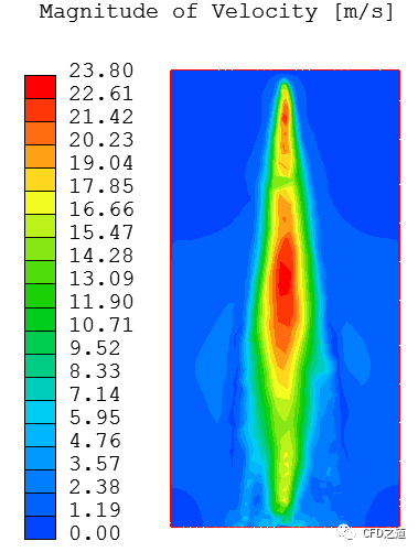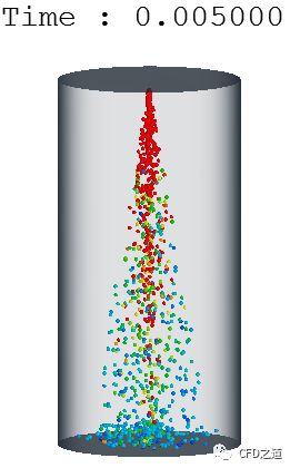 粒子由图中pcl位置向计算域中喷射雾化液滴,考虑重力及液滴的破碎过程,计算结果如图所示。