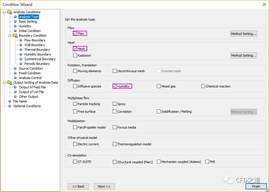 在节点Analysis Type中激活选项Flow、Heat及Humidity