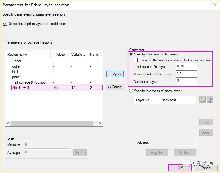 如下图所示,设置编辑No-slip wall的边界层数据,点击OK按钮关闭对话框