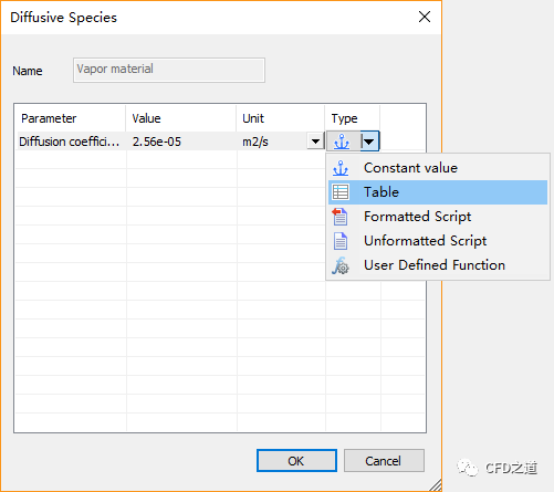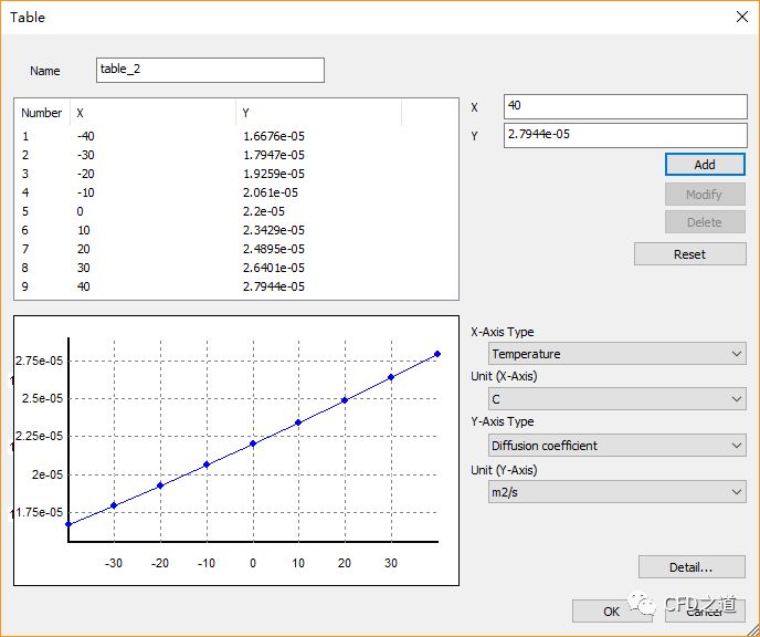 如下图所示,设置参数Diffusion coefficient的类型为Table