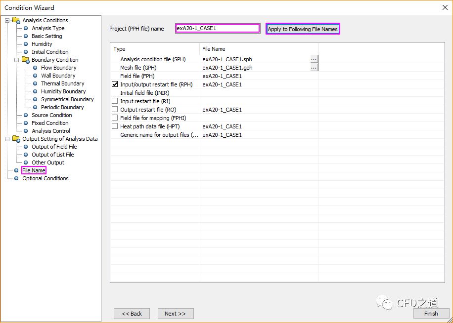 点击节点File Name,如下图所示设置工程名称,点击按钮Apply to Following File Names,点击Finish按钮关闭向导