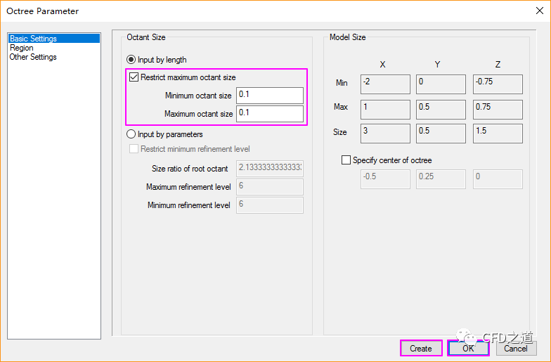 点击Octree Parameter弹出设置对话框,如下图所示,激活选项Octree Parameter,点击按钮Detail