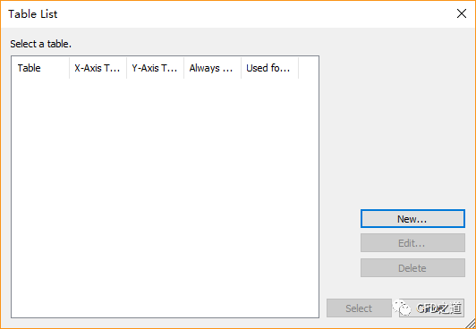 在Table List对话框中,点击按钮New…新建表格