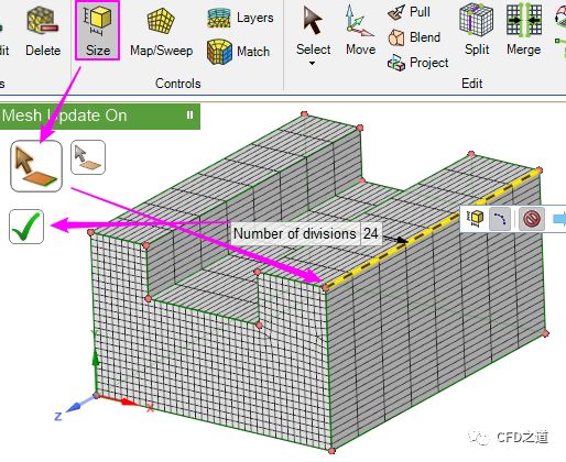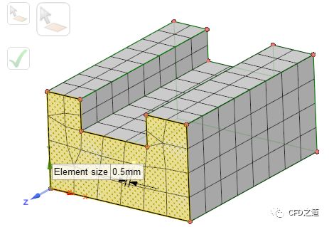 相同方式,点击工具按钮Size调整扫掠方向上的网格数量为24,点击确认按钮