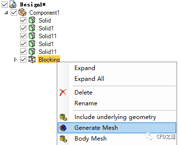 选择节点Blocking,点击鼠标右键,选择弹出菜单项Generate Mesh生成网格
