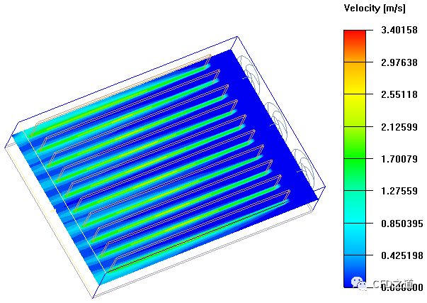 这种图对于做CFD计算的人来讲可谓司空见惯。这是一张速度云图,反应的是切面上速度场的分布,颜色表示速度高低。
