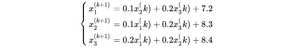 还有一个问题,这里有3个未知数,因此初始值需要提供3个值,那如果其中某一个值严重偏离目标值,计算结果会怎样呢?利用赛德尔迭代,采用初始值(10,11,120),输出为:
