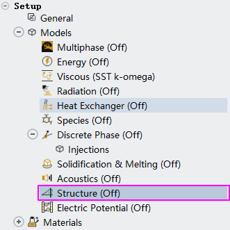 看看模型,what,多了个Structure,要计算结构么?走STAR CCM+的那种路线了么?不过ANSYS自己有结构求解器,搞不懂这个Staructure要干什么,点开来看貌似只能计算线弹性问题。