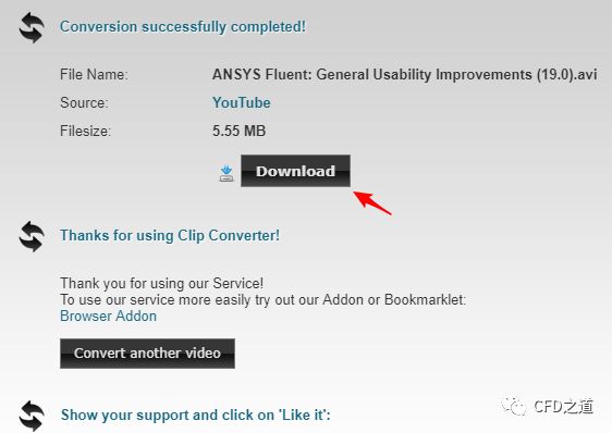 等待文件转化完毕后,点击下图所示页面中Download按钮开始下载