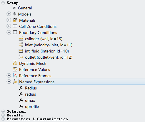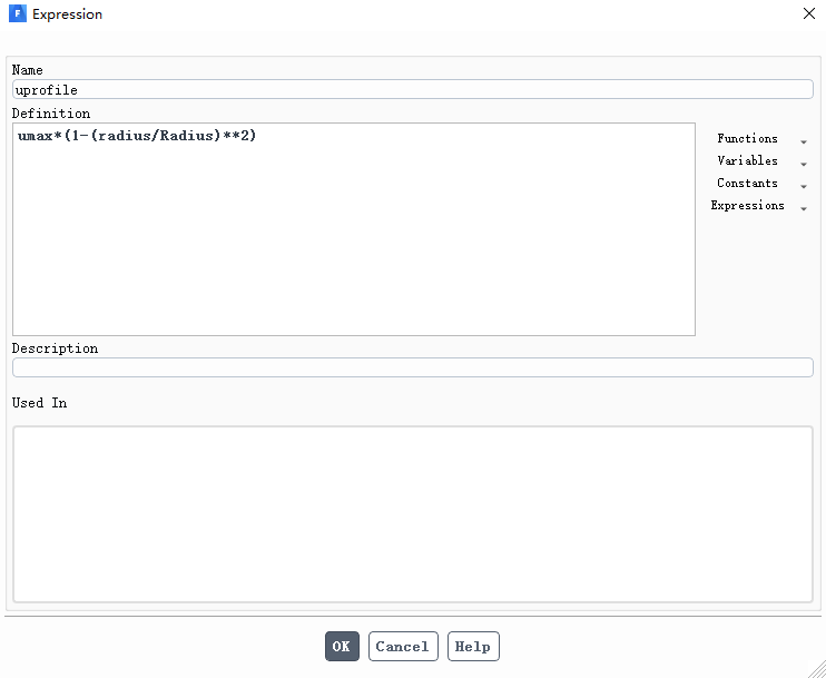 本案例利用Fluent中提供的表达式功能定义充分发展流动条件。