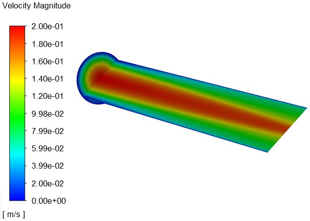 如图所示的管道流动,最高流速0.2 m/s,管道半径0.1m,管长1.2m。