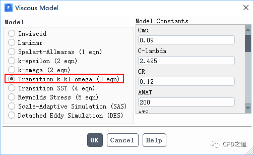 在ANSYS Fluent中可以使用以下三种转捩预测模型。其中两种方法可以与尺度分解方法(SRS)相结合。