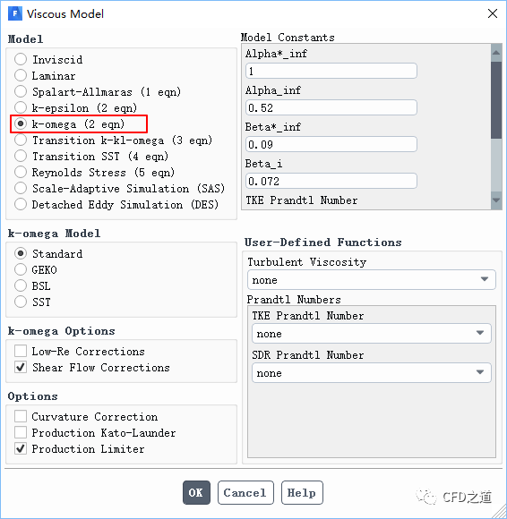 k-ω模型在预测逆压梯度边界层流动和分离方面具有较好的性能。标准w方程的缺点是计算结果的敏感性相对较强,其取决于剪切层内外的自由流的k与w的值。由于这个原因,在ANSYS Fluent中一般不推荐使用standard k-ω模型。