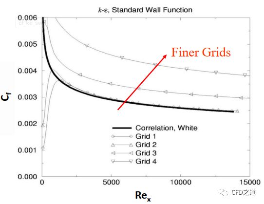 使用标准壁面函数,用户会因为网格细化而受到惩罚 -
