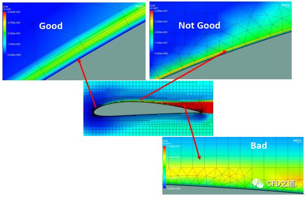 当第一层网格中心位置不正确(落到粘性子层内部或对数层外部)会导致不正确的计算结果。控制第一层网格节点放置于对数层其实不太容易。