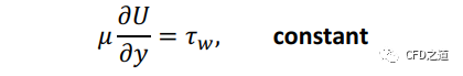 粘性子层内,湍流脉动被抑制,壁面剪切应力几乎全为粘性力,u动量方程可简化为: