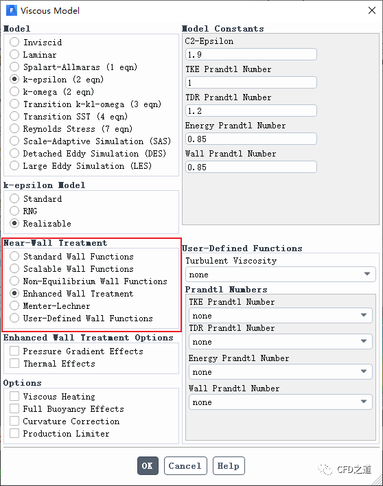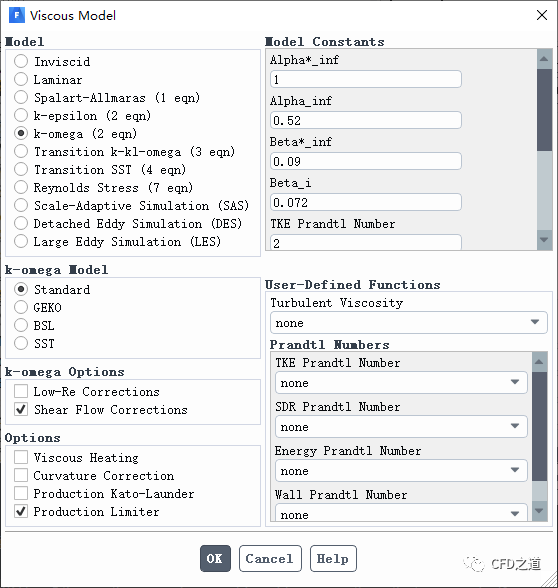 所有基于w的模型都采用了自动壁面处理,因此无需选择近壁面处理方案