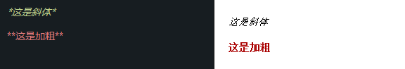Markdown 的粗体和斜体也非常简单,用两个 * 包含一段文本就是粗体的语法,用一个 * 包含一段文本就是斜体的语法。