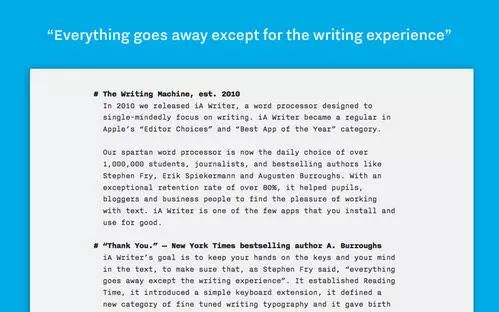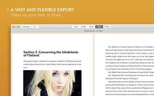 我们坚信写作写的是内容,所思所想,而不是花样格式。 — Ulysses for Mac