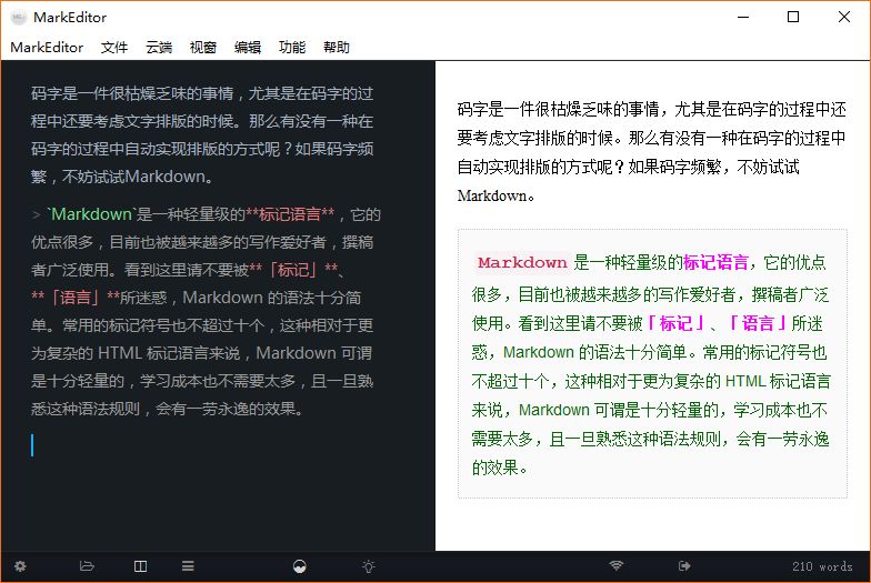 后来买了MarkEditor,用了一阵子,起初觉得挺惊艳,不过用了一阵子 还是觉得有个预览框碍事儿得很。