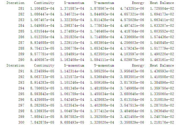 热平衡量2.78039-2.78515=0.00476W,前面STAR CCM+计算300步后热平衡是0.0122W,就此打住。