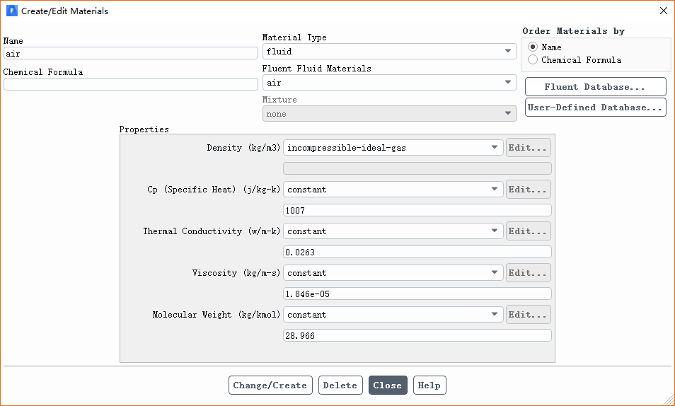 注:Fluent中计算自然对流常用不可压缩理想流体,这里假设压力变化量极小,可以增快计算速度。当然非要 用理想流体计算,也是可以的。