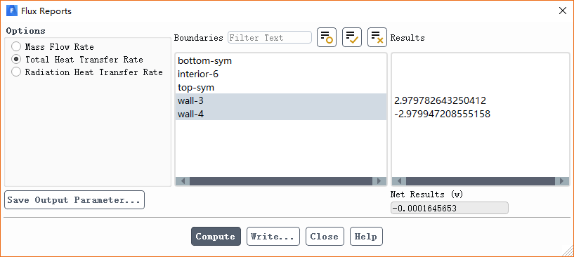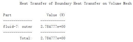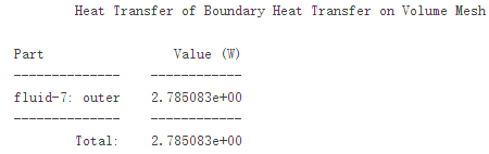 查看报告中外壁面的换热量,如下图所示为2.784777W,与网格数量13800时计算结果2.789682W基本差距极小。