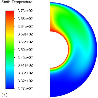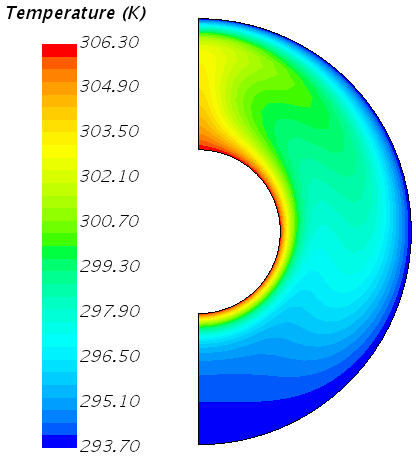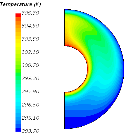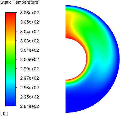 我也尝试着将不可压缩理想流体改成常规的理想流体,也尝试着将能量方程的亚松弛因子改成0.99,统统无济于事,有兴趣的小伙伴儿可以尝试,案例文件已经给大活儿了。我甚至将物性参数修改成与CCM文档中的物性参数一致,依然存在问题,最后将边界条件改成内壁面306.3K,外壁面293.7K(CCM文档中的数据),一切都变了。