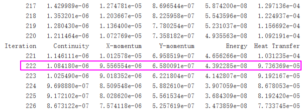 看着没什么问题,再看看迭代数据。222步热平衡达到1e-4,比耦合求解器慢了不少。