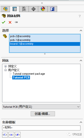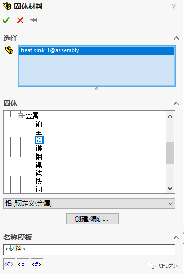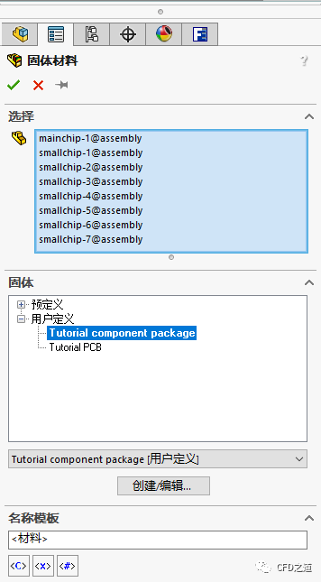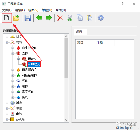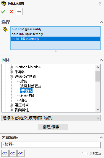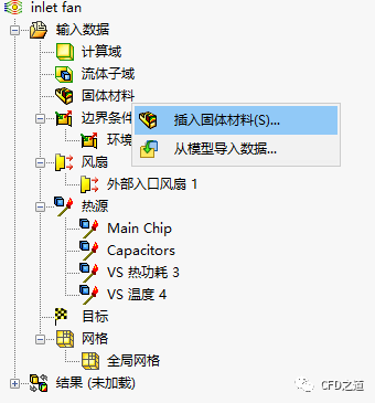 右键选择固体材料,点击弹出菜单项插入固体材料…