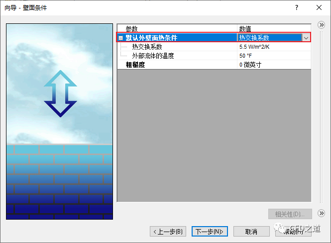 如下所示,设置默认外壁面热条件为热交换系数,并设置换热参数,点击按钮下一步