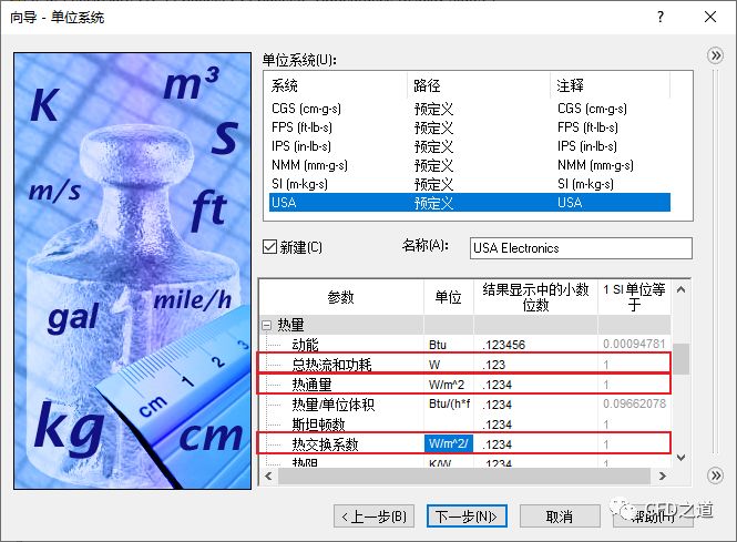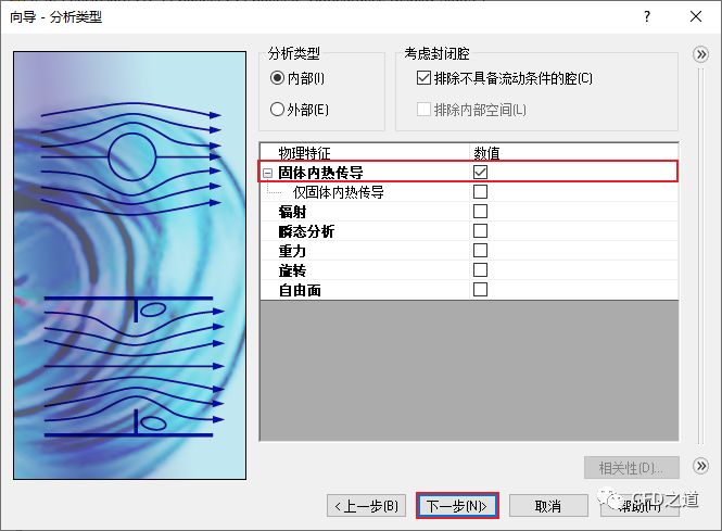 如下图所示,激活选项固体内热传导,点击按钮下一步
