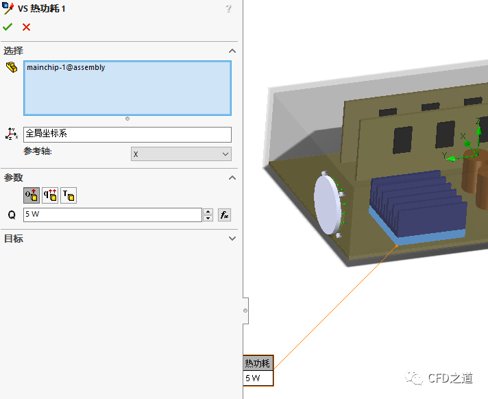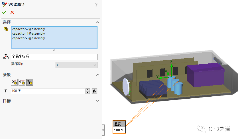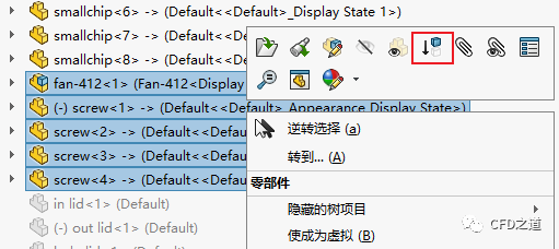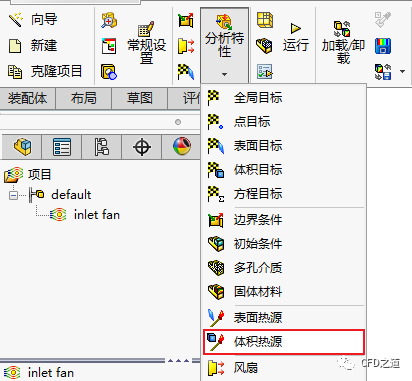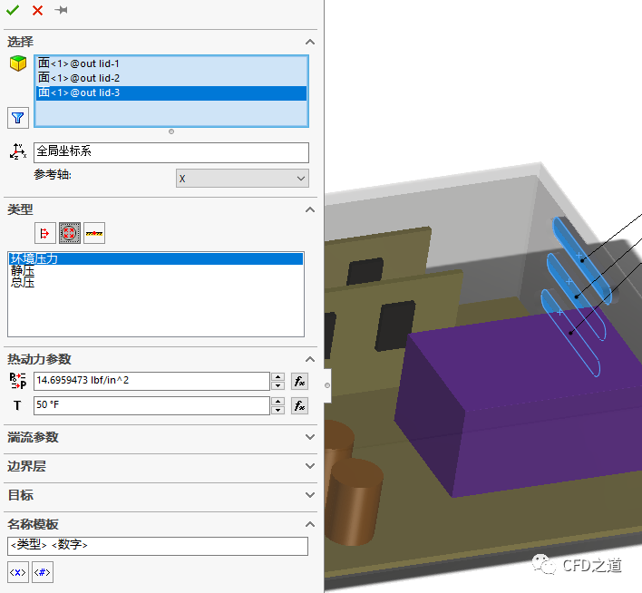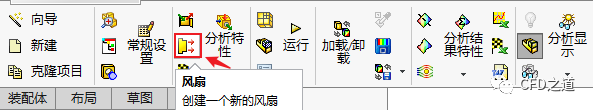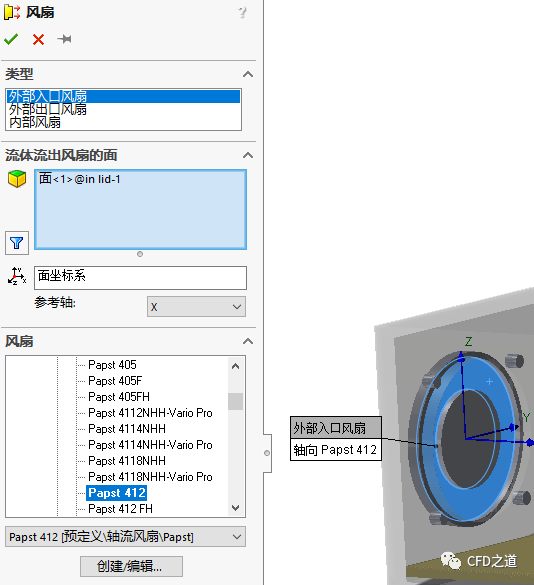如下图所示,选择几何面,指定风扇类型为轴流 Papst412,