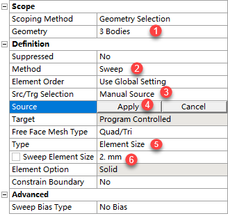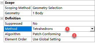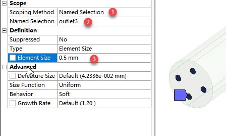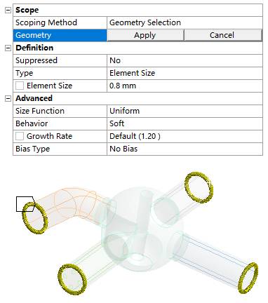 在ANSYS Mesh中,可以为几何边、面、体指定网格尺寸,再加上全局网格尺寸,因此具有四级控制。但是这四级控制具有优先级。优先级最高的是边参数,其次是面,再次是体,最低为全局尺寸。