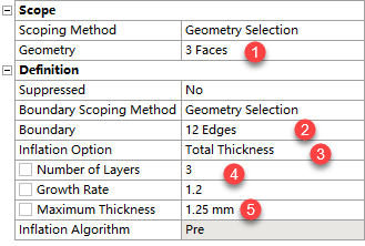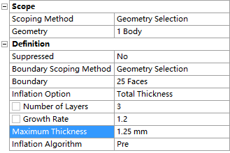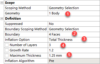 设置边界层网格参数。注意sweep方法的边界层设置与其他方法不同。