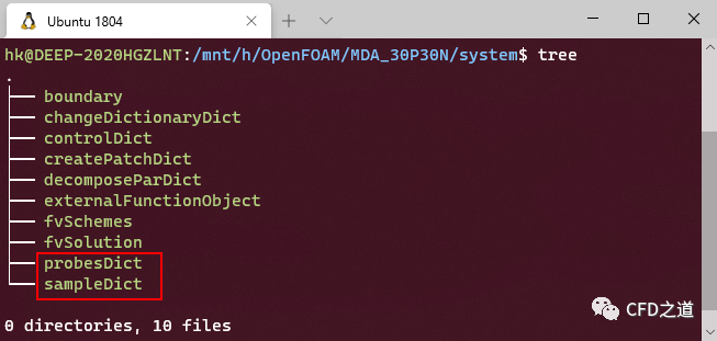 如下图所示,算例文件system文件夹中包含两个字典文件probeDict及sampleDict,其中定义了取样操作所需的参数。