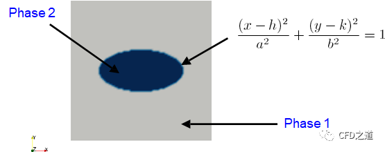 利用codeStream定义椭圆区域内相Phase2的体积分数。可以在字典文件alpha.phase1中采用下面的代码: