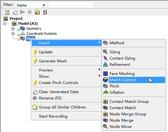 鼠标右键点击按钮Mesh,选择菜单Insert → Match Control