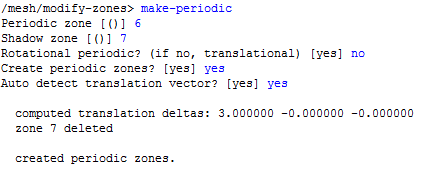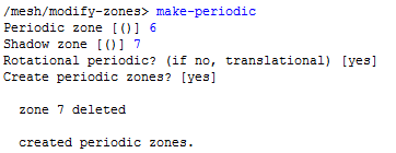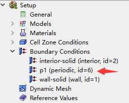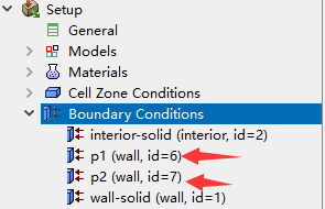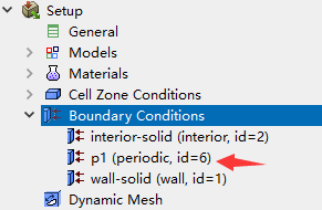 可以看到前面创建的两个命名p1和p2已经导入进来,只不过边界类型为wall,记住它们的id分别为6和7。输入TUI命令:mesh/modify-zones/make-periodic